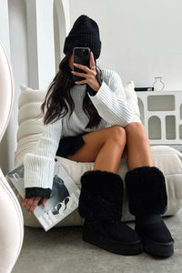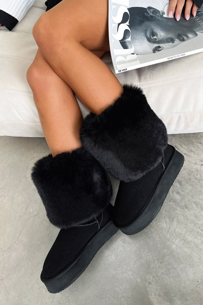 Step up your winter look with Aida Platform Boots! These boots feature a soft suede finish and a fluffy interior for ultimate comfort. The platform sole adds a touch of height and pairs perfectly with a cozy knit. Don't sacrifice style for warmth, stay chic and cozy with Aida!
