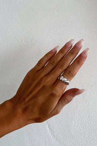 Elevate your outfit with the Alda Ring, featuring a charming design of interlocking hearts. Perfect for pairing with other gold jewellery, this ring adds a playful touch to any look!