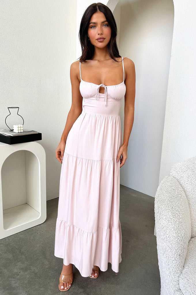 Look and feel your best in the Allie Maxi Dress! With a strappy open back and adjustable ties, this maxi dress is sure to flatter, and the flowy tiered skirt will give you summery vibes. Pair her with some mini heels and a shoulder bag for a dreamy look we love!