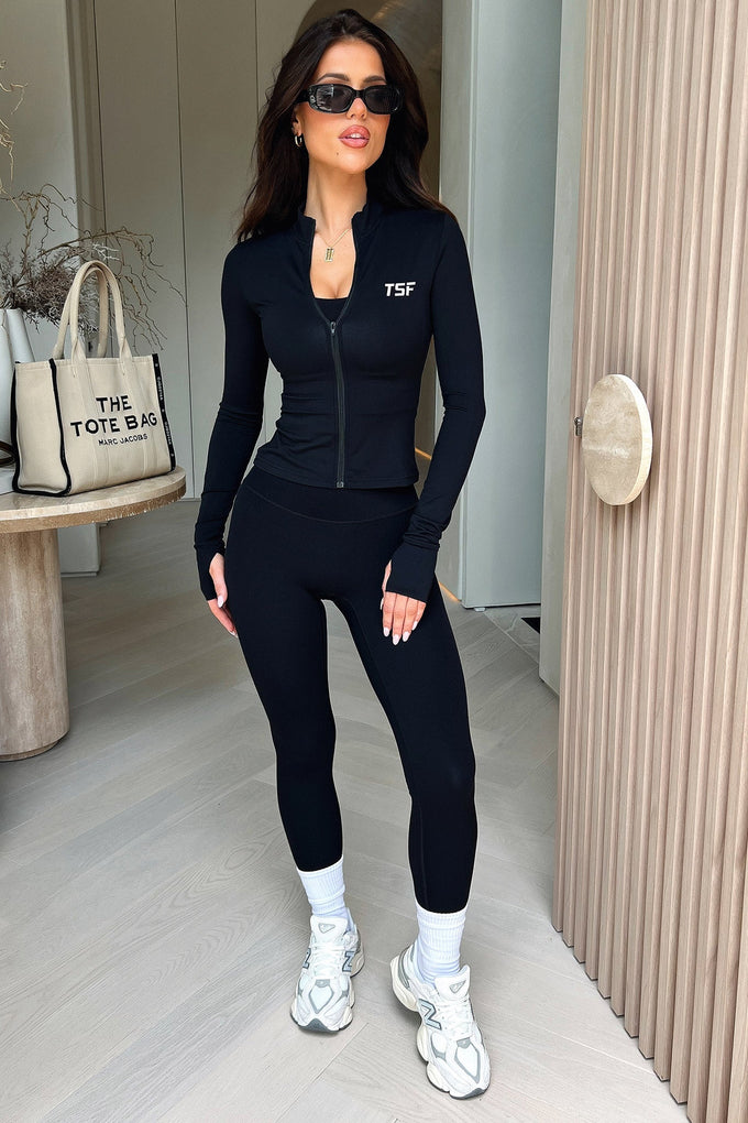Rock a sleek look in our Anaya Zip Up Jacket! With a flattering body-hugging fit, high neck, and full zip, you'll stay stylish and comfortable. Plus, full-length sleeves with thumb loops add a functional touch. Pair with matching tights and sneakers for an off-duty vibe!