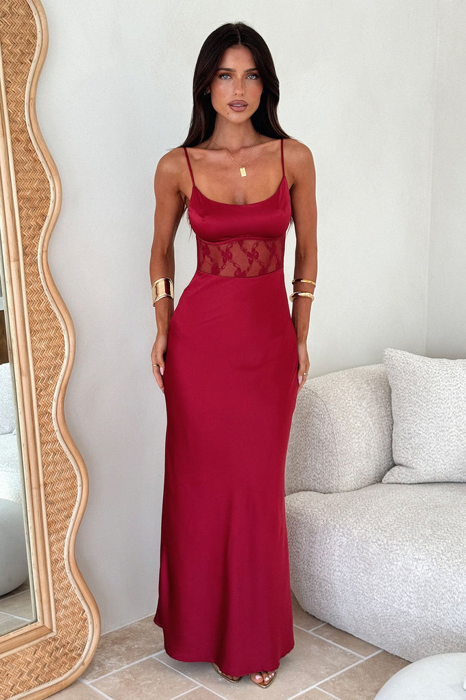 Slip into luxury with the Azaria Maxi Dress! She offers sheer lace front detailing, a flowy full length fit, double lined material, adjustable straps and an invisible side zipper. We love this paired with nude heels and gold accessories!