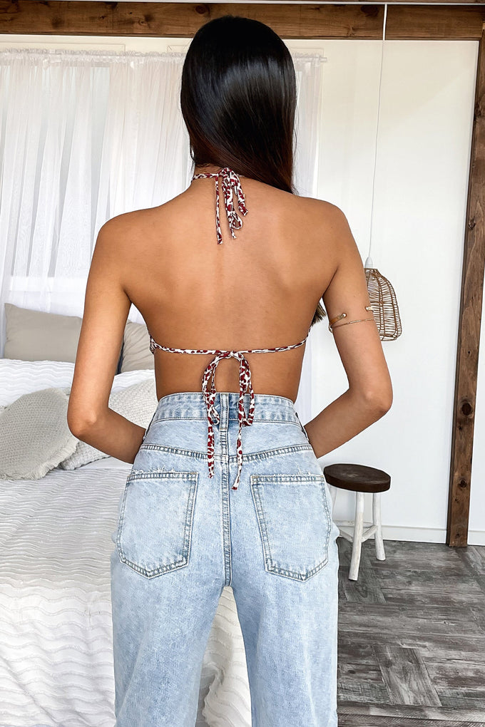 It's all in the deets babygirl! Say hello to the hot in Bandit crop in Red Leopard. She showcases a square - triangular front, halter neck with tie up strings, as well as a string on either side of the crop that ties up around the back to give you the perfect scarf top effect. Wear this baby with a black leather skirt, black boots or heels along with a ton of confidence for that IT girl look on your next night out!