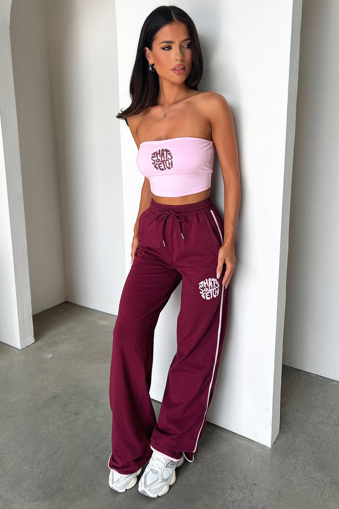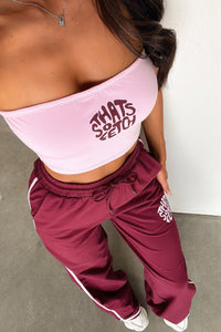 Unleash your inner fashionista with the Beckham Bandeau Top! This cropped top features a unique bandeau style and an exclusive ThatsSoFetch logo on the center. The grip tape on the inside ensures a secure fit. Pair it with the matching pants for the ultimate combo!