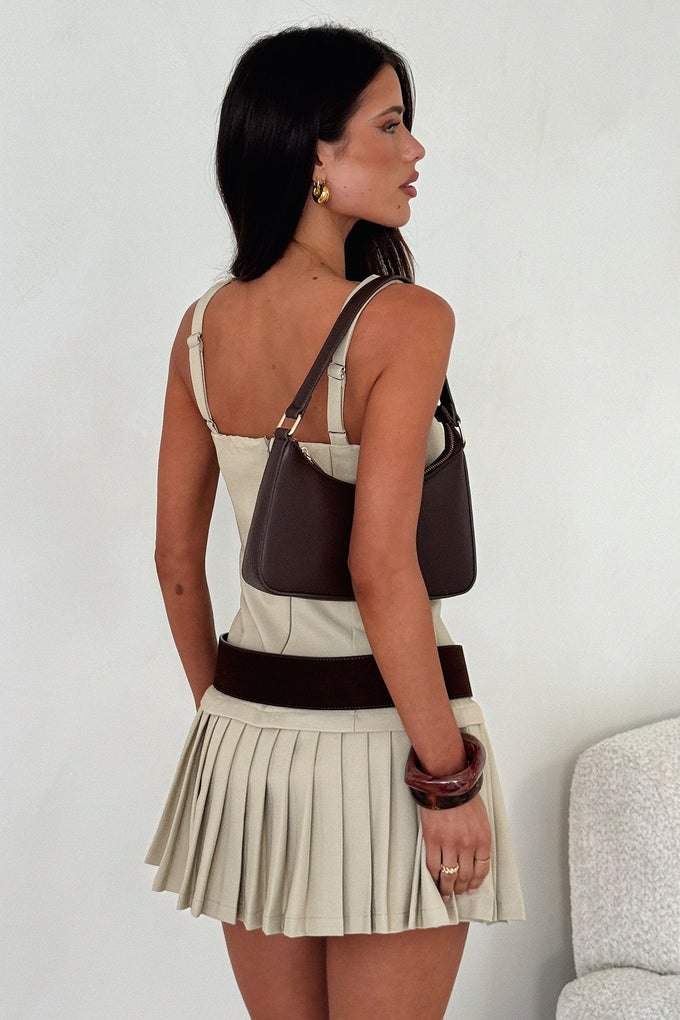 Stay stylish and comfortable in the Bruno Pleated Mini Skort! This playful piece features a flirty pleated design, a thick waistband for a flattering fit, and built-in shorts for added confidence. The invisible side zip with hook and eye closure keeps your look sleek. Pair it with the matching Bruno longline top and sneakers for a cute yet edgy outfit that’s ready for anything!