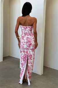 Step into luxury with the stunning Charms Maxi Dress! She offers a structured bodycon fit on top, a strapless cut, a cheeky back slit, double lined material and an invisible back zipper. Pair her with cute mules and simple jewellery for an elegant look!