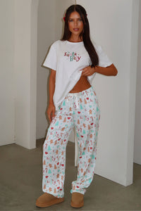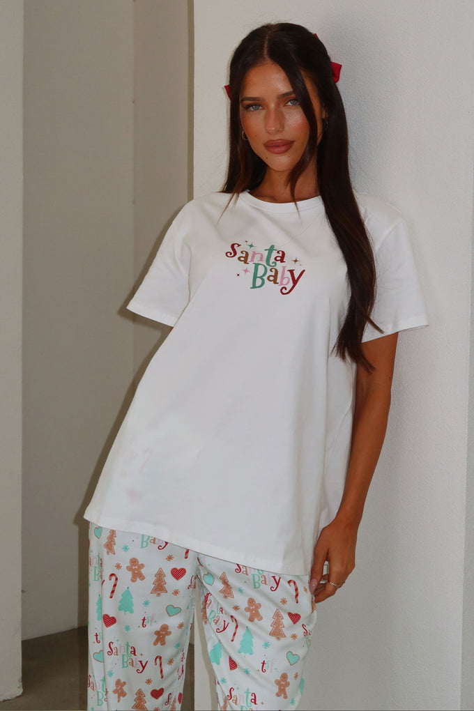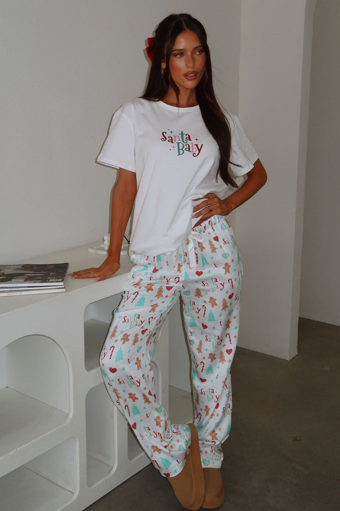 Get ready to sleigh in style with our Claus Pants in Green! These oversized straight leg pyjama pants feature a festive "santa baby" and Christmas print, perfect for spreading holiday cheer. Made from soft material and equipped with pockets and draw strings, these pants are both comfortable and practical. Complete the look by pairing them with our Claus Tee or Top!