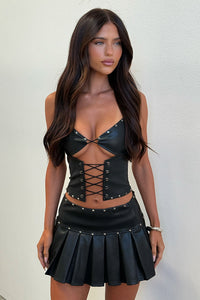 Get your festival style game on point with the Coyote Faux Leather Top! Its sleek PU leather design, silver detailing and lace-up front give off a cool and edgy vibe. With adjustable straps and a side zip for easy wear, this top also features a mesh lining for comfort. Complete your festival look with the Zehr boots, you'll be the hottest in the crowd!