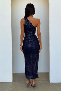 SLAYY QUEEN! The Dura Midi Dress features an asymmetrical length with ruching details down one side, a one shoulder design, a cut out detail, double lined material with a stunning sequin fabrication and a back zipper. Style her with black heels and a red lippy.