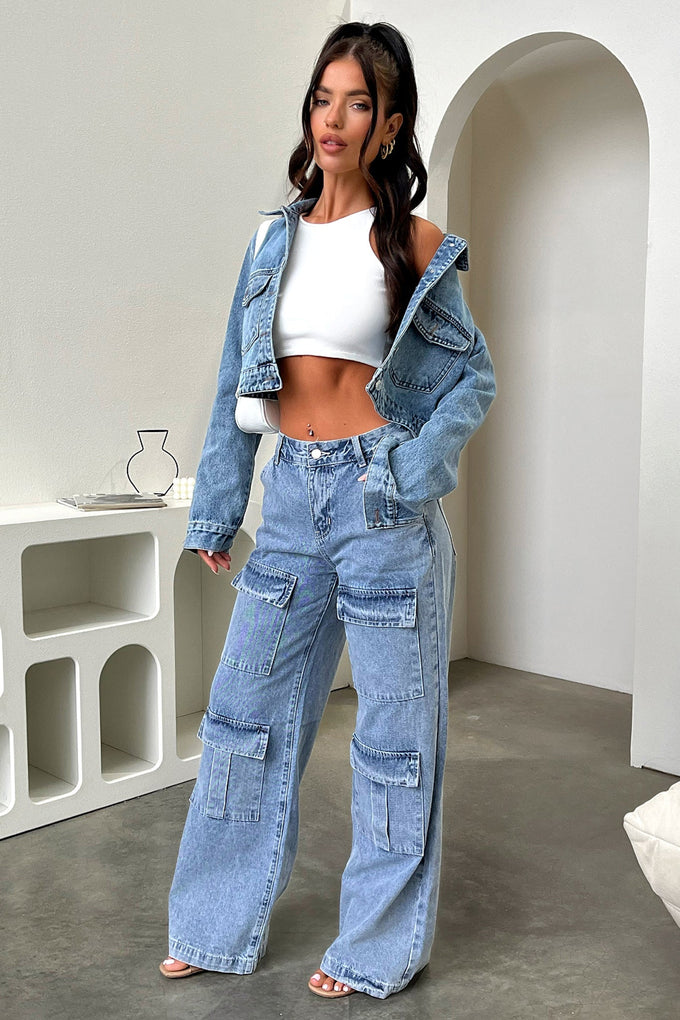 Rock a timeless look in the Dylan Denim Jacket! With a classic blue shade and cropped fit, this jacket gives off a stylish and edgy vibe. match with a white crop and our 'Adalia Jeans' for a trendy look!