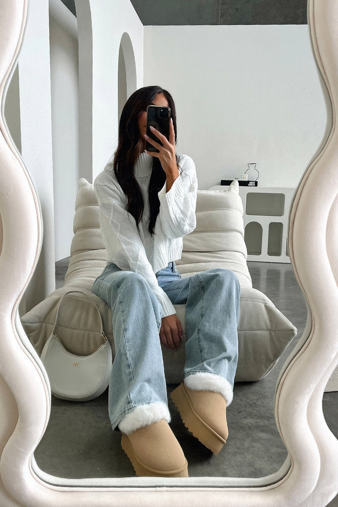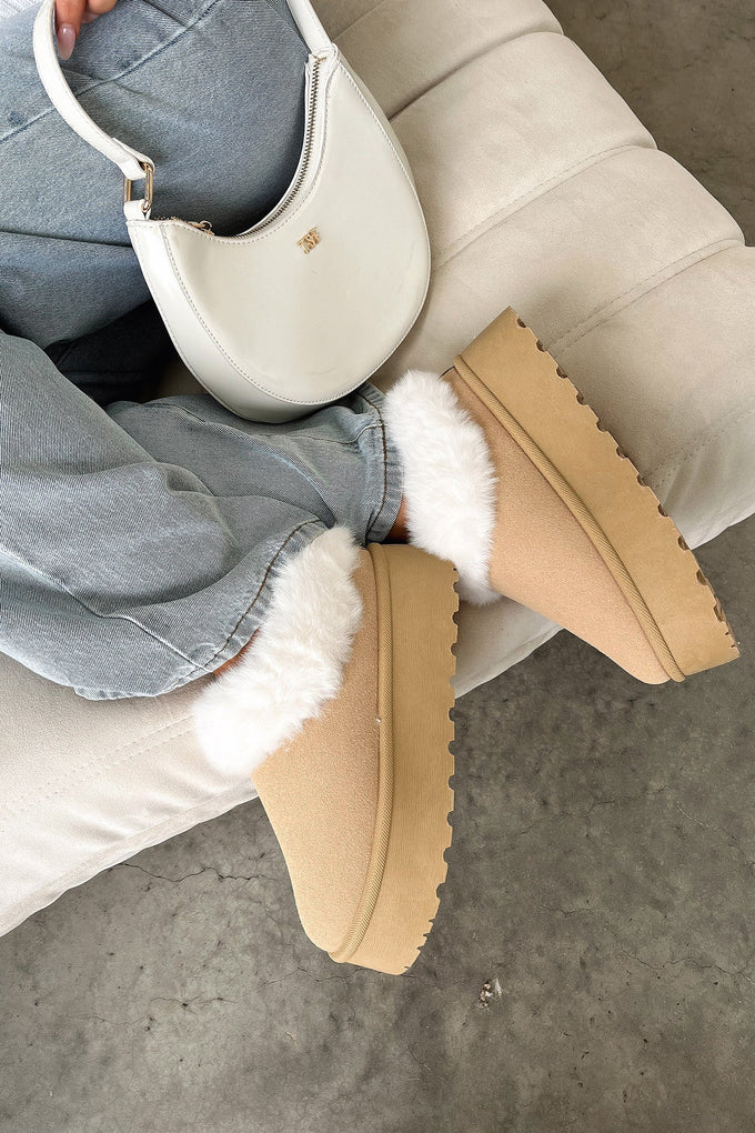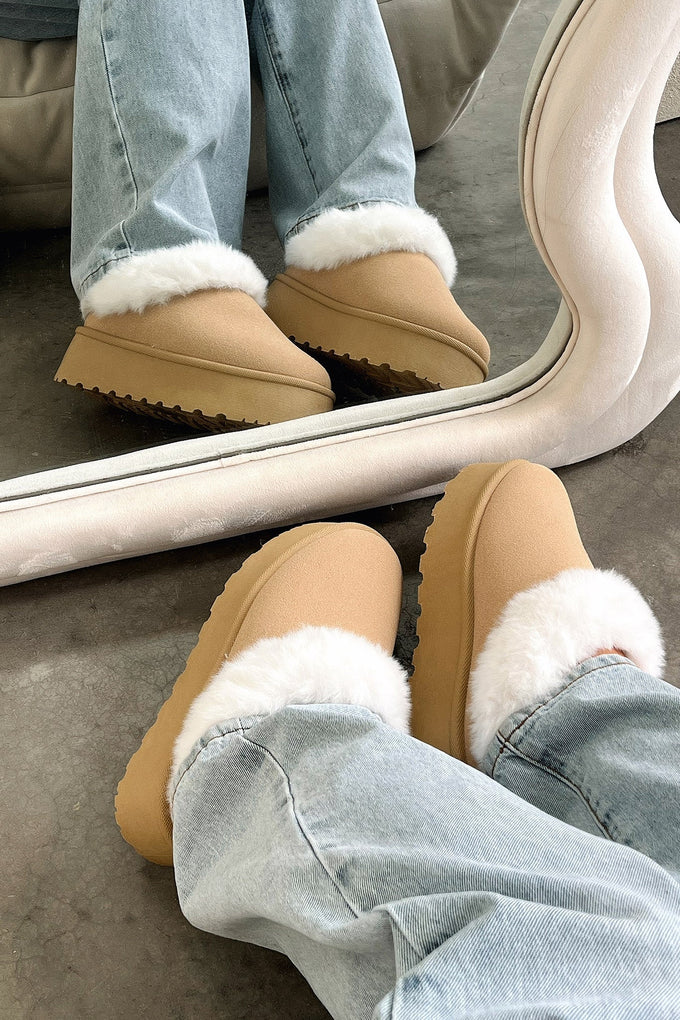 Introducing the Elani Platform Slippers perfect for an effortless winter style! With a slide on design and low cut fit, these slippers are both comfortable and stylish. The platform sole provides added height, while the fur lining keeps your feet warm. Style her with your favourite lounge set for a chic, cozy vibe!