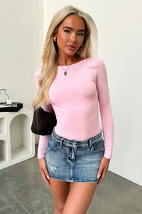 Eve Long Sleeve Backless Bodysuit - Pink