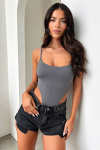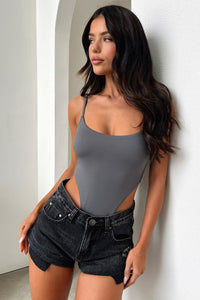 Hallie High Cut Scoop Neck Bodysuit - Charcoal