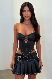 Hawk Pleated Faux Leather Mini Skirt - Black