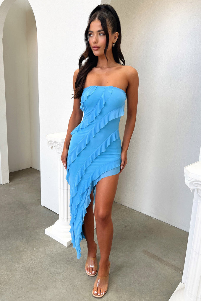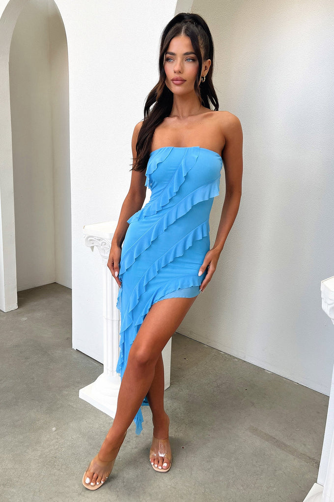 Jadore Strapless Ruffle Midi Dress - Blue