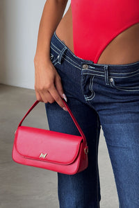 Introducing the Kaylee Bag in Red - the ultimate accessory for any occasion! Made from faux leather with gold detailing and the TSF gold logo, this rectangular shaped shoulder bag comes with a detachable cross-body strap and snap button closure. With an internal zip pocket, this bag is both stylish and practical!