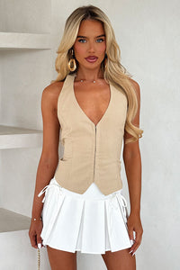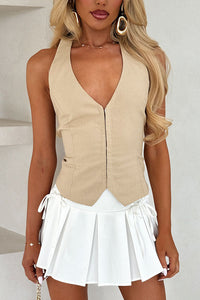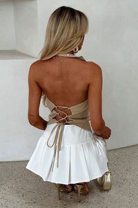 Look chic and edgy in the Mikeala Skirt! This pleated mini skirt features two front ties, allowing for a slightly adjustable waistband and an invisible side zip for easy wear. Perfect for your next festival, pair with a crop top and boots for a stylish look!