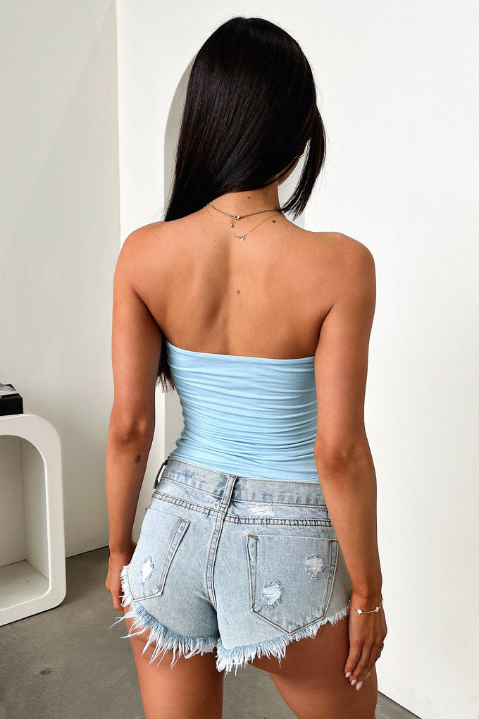 Beat the heat in style with the Myah Top, a summer staple! Featuring a bandeau design, bodycon fit, 3/4 length, soft double lined material and lined with silicone gripper elastic across the top of the inside! Pair her with your fave denim shorts and cute sandals for the ultimate summers day fit!