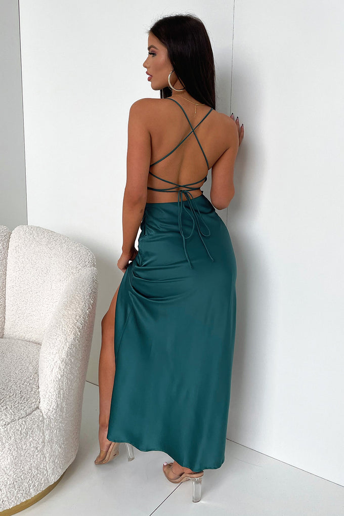 Your fave party babe now comes in a maxi length! Our new Olivia Maxi is sure to be your next fave formal dress featuring a gorgeous A-line fit with a flowy bottom, a cheeky high, side split, a cowl neckline, a side zipper and thin shoulder straps that continue to the back forming a backless criss cross design. Style her up with nude heels and delicate silver jewellery to be the centre of attention at your next formal event.