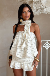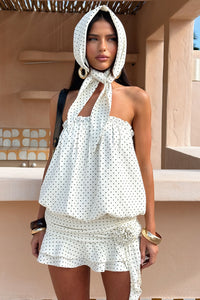 Palo Strapless Bubble Mini Dress - Ivory Polka
