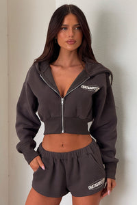 Get ready to elevate your casual game with our Series 10 Cropped Jacket! Made from soft fleece, this grey jacket boasts a cute cropped fit and features a silver zipper and our exclusive Series 10 logo. Pair it with our matching bike shorts for a stylish and comfortable vibe!