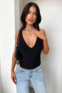 Feel confident and flirty in this black Sofia bodysuit! Its double lining and soft material provide a snug fit while you show off the deep scoop neckline. Dress her up with jeans and heels for a date night you'll never forget!