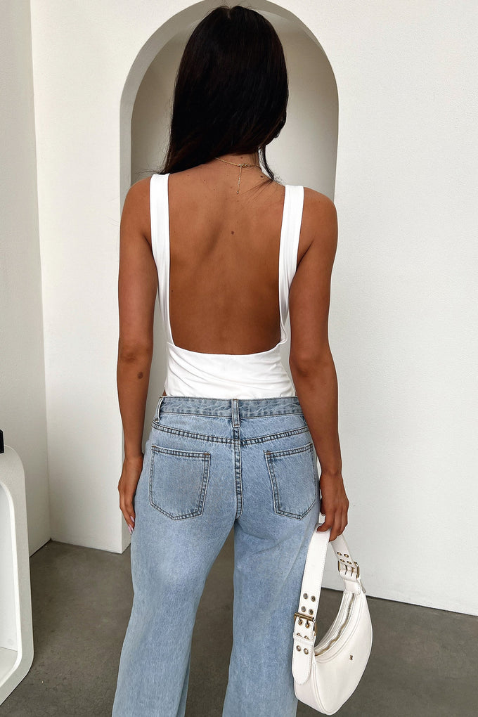 Feel confident and flirty in this white Sofia bodysuit! Its double lining and soft material provide a snug fit while you show off the deep scoop neckline. Dress her up with jeans and heels for a date night you'll never forget!
