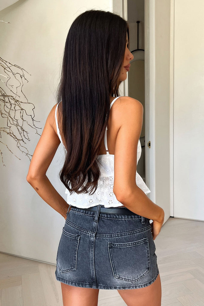 The Taya Crop is the perfect summer top for all your sunny adventures! Made with cute anglaise fabric and adorned with a playful floral print, it features a flattering v neckline, invisible side zip and thin adjustable shoulder straps. Complete with a tie on the front for added detail, pair it with denim shorts and gold jewellery for a stylish look!
