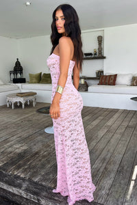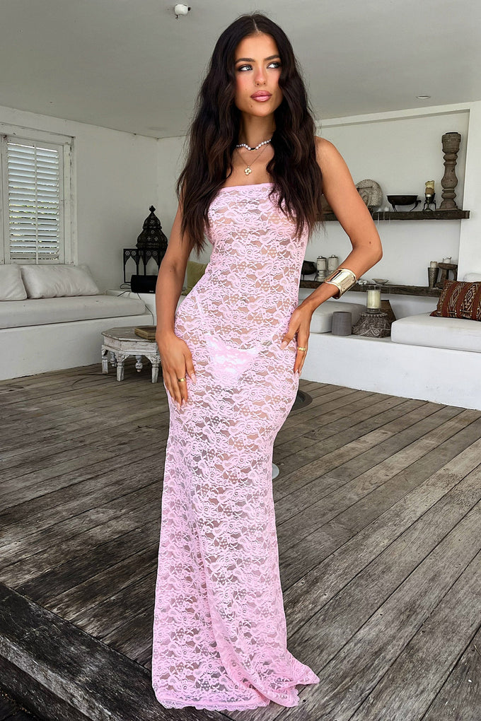 Introducing the Veradi Maxi Dress! This stunning dress features a strapless neckline and romantic lace material, with a flared out bottom. Plus, stay worry-free with the silicone grip tape along the inside of the bust. Pair with heels and gold jewellery for a fun summers night out!