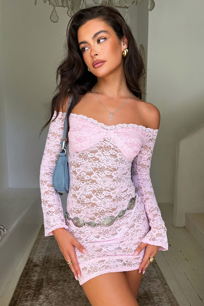 Be the star of the show in the Zila Dress! This dress features an off the shoulder neckline, double lined busts, flared sleeves, and a body con fit for a flattering look. Made of floral lace material, it's perfect for a night out. Add some simple heels and gold jewellery to complete this show stopping look!